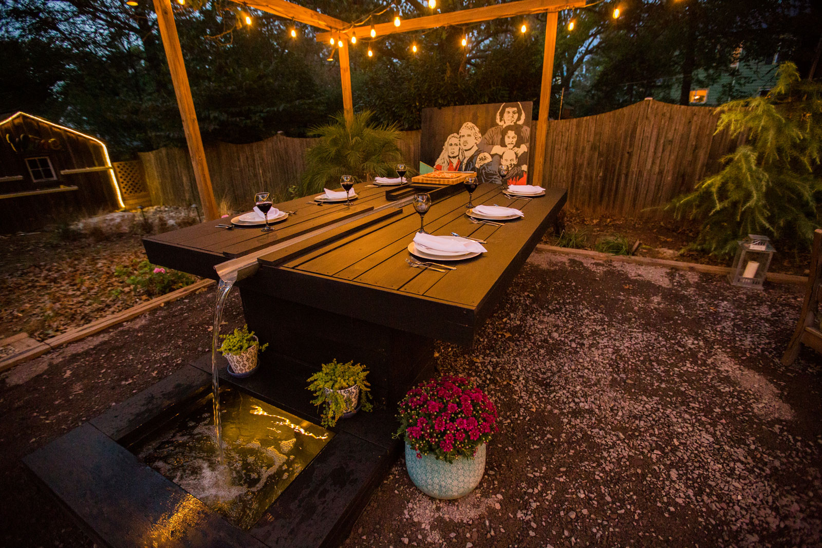 We knew we wanted a patio. I sold MJ on the idea of a pizza oven, and she was all in on that. The rest of it started to come together the longer we lived here. I found a photo on Pinterest of an outdoor dining table that had a stream running through it, and we decided that was a must. As I developed a deep and meaningful relationship with my grill, I knew an outdoor kitchen with lots of prep space was important. It also had to be relatively low maintenance, and we couldn’t spend a gazillion dollars. Once we got landscape dawg, and then landscape dawg deux, we also knew plenty of grass was important.