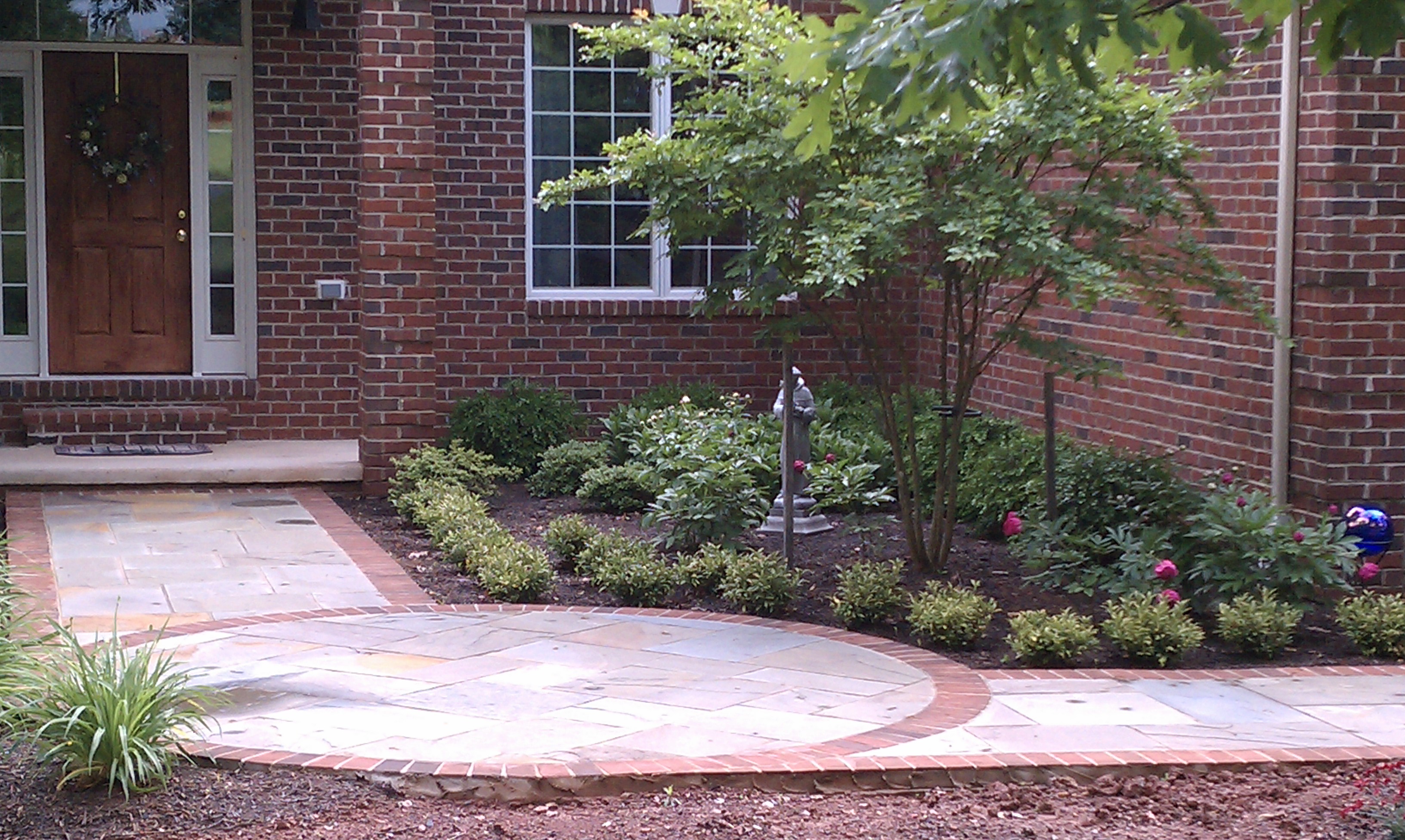 In most cases the front walk that the builder provided needs torn out, but again – it’s a really variable cost, so we’ll ignore it for now. A new concrete walk generally averages $8-12 per sq ft, pavers average $15-25 per sq ft, and flagstone and/or brick on new concrete averages $30-35 per sq ft (I don’t generally recommend flagstone on stone dust for front walks because I believe a front walk should be as smooth and consistent as possible). For most homes, that means you could be as low as $2000-3000 for a new concrete walk or $4000-7000 for a flagstone walk.