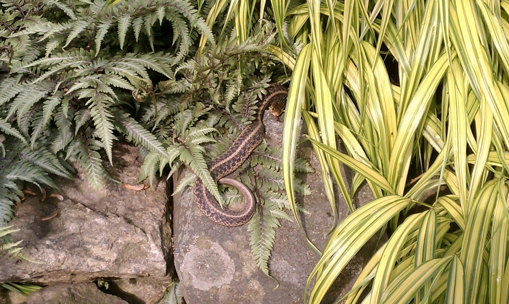 This cute little fella was hanging out and enjoying the warm sunshine. Yes, you will likely get the occasional snake around your pond. There’s water, abundant food, and big flat rocks on which to sun themselves. It’s ok, they’re no more interested in you than you are in them.